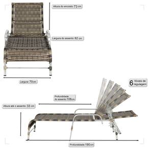 Produto conhecido como: Espreguiçadeira reclinável, Espreguiçadeira em alumínio, Espreguiçadeira com encosto ajustável, Espreguiçadeira para área externa, Espreguiçadeira para piscina, Espreguiçadeira resistente ao tempo, Espreguiçadeira moderna, Espreguiçadeira confortável, Móveis para área externa, Móveis de alumínio para jardim, fibra sintetica para móveis, Espreguiçadeira leve e durável, Design sofisticado para áreas externas, Decoração para varanda e piscina, Espreguiçadeira resistente ao sol e chuva