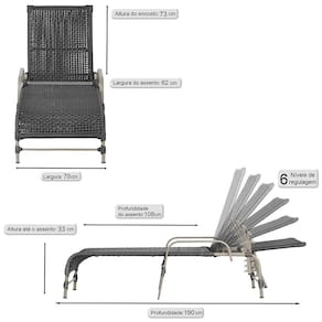 Produto conhecido como: Espreguiçadeira reclinável, Espreguiçadeira em alumínio, Espreguiçadeira com encosto ajustável, Espreguiçadeira para área externa, Espreguiçadeira para piscina, Espreguiçadeira resistente ao tempo, Espreguiçadeira moderna, Espreguiçadeira confortável, Móveis para área externa, Móveis de alumínio para jardim, Corda náutica para móveis, Espreguiçadeira leve e durável, Design sofisticado para áreas externas, Decoração para varanda e piscina, Espreguiçadeira resistente ao sol e chuva.