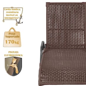 Produto conhecido como: Espreguicadeira reclinavel, Espreguicadeira em aluminio, Espreguicadeira com encosto ajustavel, Espreguicadeira para area externa, Espreguicadeira para piscina, Espreguicadeira resistente ao tempo, Espreguicadeira moderna, Espreguicadeira confortavel, Moveis para area externa, Moveis de aluminio para jardim, Corda nautica para moveis, Espreguicadeira leve e duravel, Design sofisticado para areas externas, Decoracao para varanda e piscina, Espreguicadeira resistente ao sol e chuva.