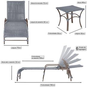 2 Espreguiçadeiras Catar 2 Mesas Garden Corda Náutica Trama Prata
