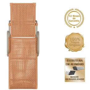 O encosto reclinavel permite ajuste perfeito para seu conforto, enquanto a corda nautica trancada proporciona um toque elegante e ergonomico.