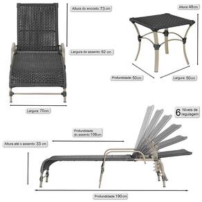 Produto conhecido como: Espreguiçadeira reclinável, Espreguiçadeira em alumínio, Espreguiçadeira com encosto ajustável, Espreguiçadeira para área externa, Espreguiçadeira para piscina, Espreguiçadeira resistente ao tempo, Espreguiçadeira moderna, Espreguiçadeira confortável, Móveis para área externa, Móveis de alumínio para jardim, Corda náutica para móveis, Espreguiçadeira leve e durável, Design sofisticado para áreas externas, Decoração para varanda e piscina, Espreguiçadeira resistente ao sol e chuva.