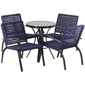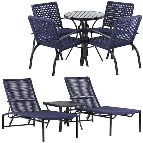 2 Espreguiçadeiras e Cadeiras e Mesa Corda Náutica Mesa Piscina Jardim Trama - Azul Marinho