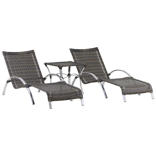 2 Espreguiçadeiras Emily + Mesa Alumínio - Piscina, Jardim - Marrom Cacau