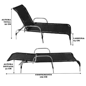 2 Espreguiçadeiras Havaí em Fibra Sintética e Alumínio Polido com 7 Posições Panero Móveis