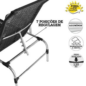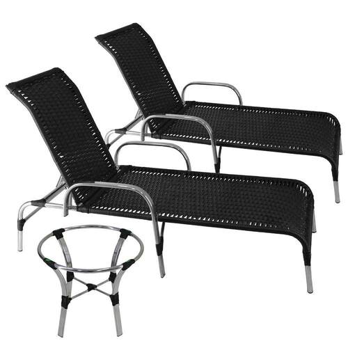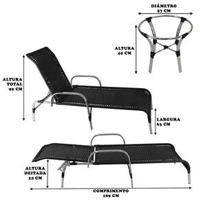 2 Espreguiçadeiras Havaí Fibra Sintética Preto E Mesa Centro Garden 7 Regulagens