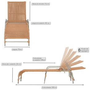O encosto reclinavel permite ajuste perfeito para seu conforto, enquanto a corda nautica trancada proporciona um toque elegante e ergonomico.