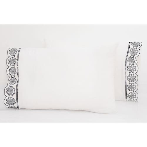 PAR DE FRONHA AVULSA 100% ALGODÃO PERCAL 200 FIOS BARRADO BORDADO RICHILIEU