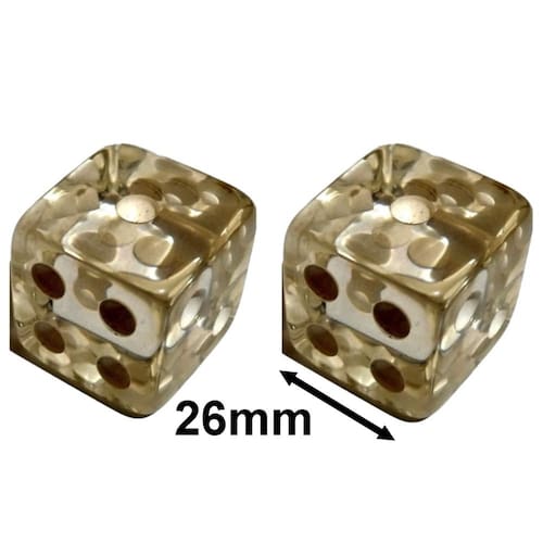 2 Jogo De Dado 26mm (2,6cm) Transparente - Euclides Jordão CaracterísticaUso: Jogos/DiversãoComposição: Resina de Poliéster, Corante para Poliéster, Tinta AtóxicaRestrições/Riscos: Este produto contém peças pequenas que podem ser engolidas por uma criança.Durabilidade: IndeterminadaEspecificações TécnicasComposição da Embalagem: 2 DadosFabricado por: Euclides Jordão Origem: BrasilDimensõesMedidas do Produto:Comprimento: 2,6 cmLargura: 2,6 cmAltura: 2,6 cm