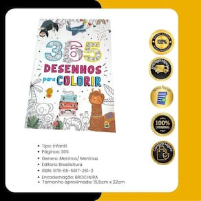 Não perca a chance de dar ao seu filho um presente que combina diversão e aprendizado Adquira agora o 365 Desenhos Diversos para Colorir e transforme cada dia em uma outra aventura de cores e criatividade Marca: Brasilleitura