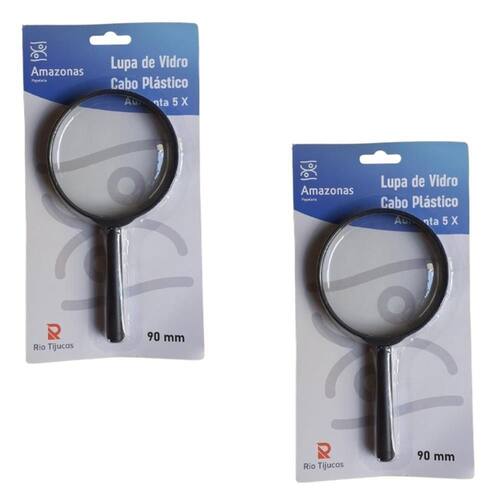 2 Lupas Manual 90mm Aumento Grande 5x Lente Leitura Estetica Kit contendo 2 Lupas de Vidro 90mm com Cabo Plástico