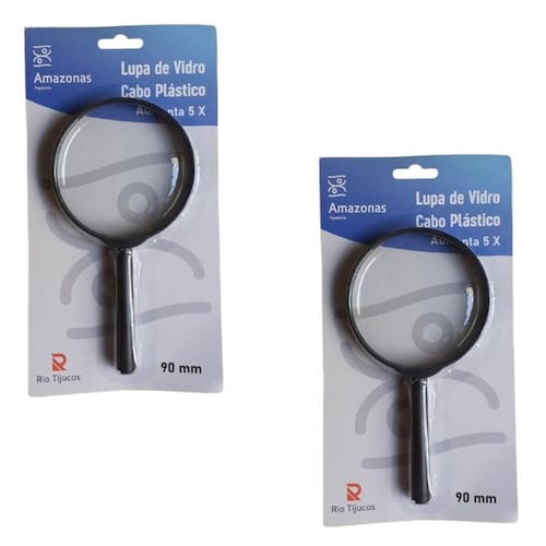 Comprimento Total da Lupa: 17,5 cm Poder de ampliação: 5X Conteúdo da embalagem: 02 Lupas de Mão
