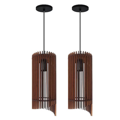 2 Lustre Pendente Rustico Chinês MDF Lustre Pendente Modelo: Pendente Chinês MDF Cor: Amadeirado Medidas Aproximadas: Altura: 28 cm Diâmetro: 12 cm Canópla de teto: 12 cm Soquete e-27 plástico Material: alumínio Marca R.R.J.V Negócios O pendente acompanha 2 Dois Metro de fio com altura ajustável. Marca: Rrjv Negocios
