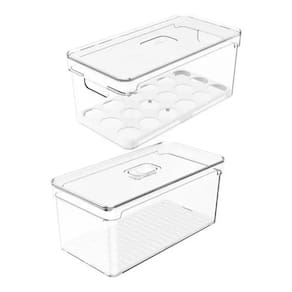 Kit 2 Organizadores De Geladeira Porta Ovos 36 Un Porta Frutas Legumes Verduras 5L Clear Fresh OU. Organizador De Geladeira Com Respiradouro E Bandeja De Drenagem Caixa De Armazenamento Para Ovos Com Tampa Empilhável Conjunto Linha Clear Fresh OU