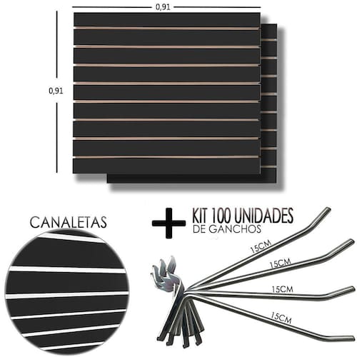 Kit contendo 2 (dois) Paineis Canaletados Expositor em MDF, também conhecido como SlatWall. Ideal para todos os tipos de loja! + 100 unidades de ganchos ZINCADOS 15cm + Canaletas na cor BRANCO
