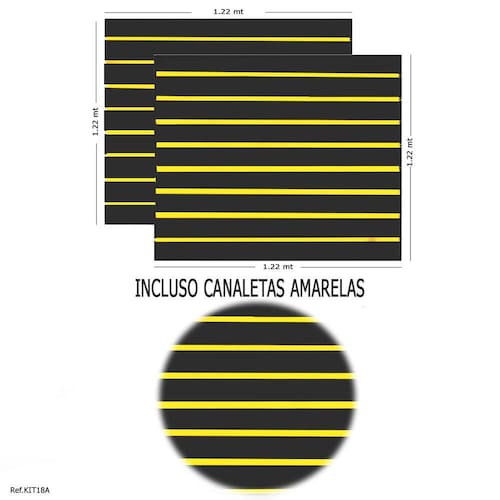 2 Paineis Canaletados 1,22 x 1,22+ Canaletas AmarelasTambém conhecido como SlatWall, é utilizado para exposição organizada de produtos dos mais diversos segmentos. O painel na medida de 1,22 x 1,22 permite que o comprador faça a instalação da maneira que melhor o convém! Isso se deve pela medida, que pode compor peças maiores, adequando assim da melhor maneira para o seu negócio.DESCRIÇÃO:Kit contendo 2 (DOIS) Paineis Canaletados Expositor em MDF, também conhecido como SlatWall. Ideal para todos os tipos de loja! + Canaletas Amarelas. INCLUSO:-2 unidades de Painel Canaletado Preto 1,22 X 1,22;-Canaletas Amarelas (as canaletas já seguem instaladas no painel);ESPECIFICAÇÕES:Cor: Painel Canaletado PretoMaterial: MDFMedidas Aproximadas: Comprimento de 1,22 MT // Altura de 1,22 MT // Largura ou espessura : 18mm.