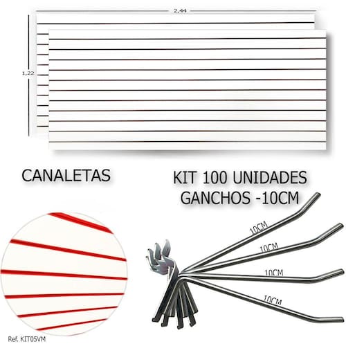 Kit contendo 2 (DOIS) Paineis Canaletados Expositor em MDF, também conhecido como SlatWall. Ideal para todos os tipos de loja! + 100 unidades de ganchos ZINCADOS