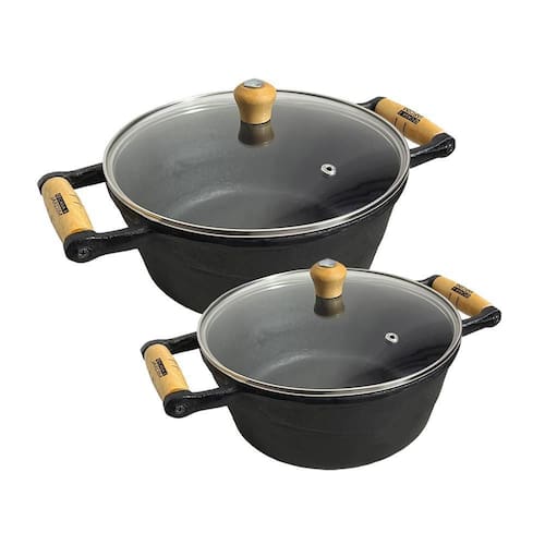 2 Panela de Ferro Grande Caçarola Alça Madeira Tampa Vidro Ideal para Arroz, frango, feijão e etc. A panela de ferro Casa e Jardim apresenta uma grande versatilidade onde elas fornecem suplementação de ferro para o organismo, não liberam toxinas nos alimentos. Tendo uma resistência duradoura cozinhando os alimentos por muito tempo. Todas as panelas de ferro do modelo caçarola podem ser utilizadas em todos os tipos de fogão a gás, a lenha, elétrico e também em cooktop de indução.