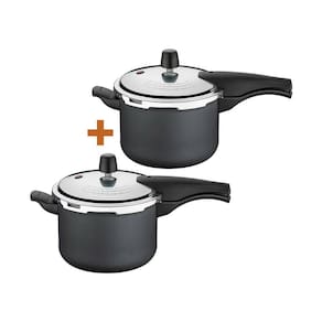Componentes do kit: -2 panelas de pressão 4,5 vancouver grafite - tramontina- não indicado para fogão indução. Panela pressão 4,5 lts antiaderente tramontina vancouver descrição ficha técnica:modelo vancouver starfloncód. 20582/620 grafitecód. 20582/720 vermelha eficiente e segura. Produzida em alumínio com revestimento interno e externo em antiaderente starflon t1tampa em aluminio com acabamento externo polido e interno satinado tampa não é antiaderente . Alças e cabo superior e inferior em baquelite. Sitema de segurança lateral. Válvula de segurança. Válvula de trabalho alívio de pressão . - revestimento antiaderente starflon. - maior resistência á desgaste por fricção, raspagem. - pode cozinhar fogão gás, elétrico e também vitrocerâmico. - fácil manuseio e limpeza. - capacidade 4,5l. - 1 unidade por embalagem. - 3 sistema de segurança 1 cabo e 2 na tampa. peso líquido: 1,6 kgpeso bruto: 1,75 kgmedidas internas panela : 19,5cm diâmetro x 14,5 alt. verifique o nivel máxima informado no interior panela medida externa: 22,9cm a x 40,8cm l x 23,1 p - mais detalhes, na foto do anuncio . Expecificação da embalagem do kit:peso bruto: 3,5kgmedida embalagem: 21 cm alt x 46cm l x 39cm p. Perguntas frequentes:- produto novosim, , lacrado e garantia de fábrica. - qual a garantiagarantia é de 12 meses contra defeito de fábricação. - quantos litros4,5l - medidas internas 19,5cm diâmetro x 14,5 alt. verifique o nivel máxima informado no interior panela .