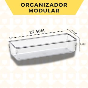 Esses organizadores são perfeitos para setorizar suas gavetas. Você compõe conforme os itens que serão organizados, além de serem empilháveis para otimizar o espaço utilizado e modulares para que você defina o tamanho e a quantidade que necessita para organizar melhor o seu ambiente. São ideais para temperos, materiais de escritório, gavetas e outros objetos pequenos. Em plástico de alta qualidade, transparente para facilitar a visualização dos objetos.