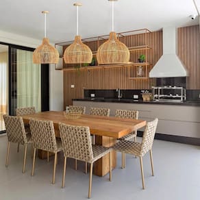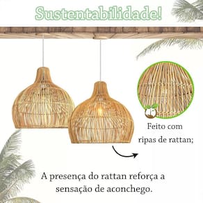 O rattan é um material natural que confere um toque orgânico e acolhedor à decoração, criando uma atmosfera calorosa e relaxante, é resistente e durável, tornando os pendentes de fibra natural uma escolha sólida para decoração, pois tendem a durar por muitos anos. Esses pendentes combinam bem com uma variedade de estilos de decoração, desde o rústico até o contemporâneo, proporcionando conforto na escolha de seu ambiente.