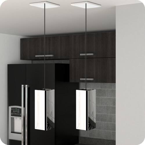 O formato do pendente proporciona uma iluminação suave e agradável, sua canopla é quadrada para harmonização da peça, quando utilizado em conjunto faz com que a iluminação deixe o ambiente ainda mais elegante.