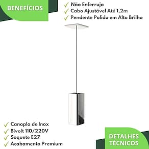 Acabamento do Pendente e da Canopla: Polido em Alto Brilho