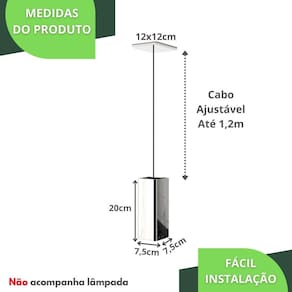 O formato do pendente proporciona uma iluminação suave e agradável, sua canopla é quadrada para harmonização da peça, quando utilizado em conjunto faz com que a iluminação deixe o ambiente ainda mais elegante.