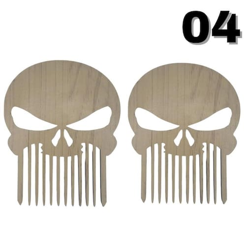 2 pentes para bigode e barba modelo 04 caveira cor bege mdf Pente de madeira para barba e bigode