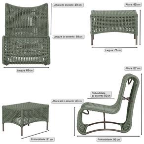 2 Poltrona e Mesa Texas em Alumínio Trama - Verde Musgo