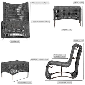 2 Poltrona e Mesa Texas em Alumínio Trama - Preto