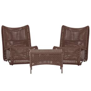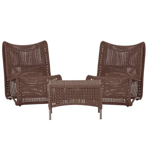 2 Poltrona e Mesa Texas em Alumínio Trama - Marrom Chocolate