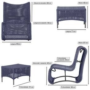 2 Poltrona e Mesa Texas em Alumínio Trama - Azul