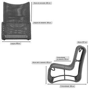 2 Poltrona Texas em Alumínio Trama - Preto