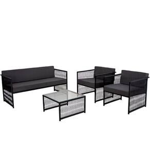 2 Poltronas, 1 Namoradeira e 1 Mesa de Centro Santiago em Fio de Fibra Sintética e Ferro com Pintura Eletrostática Panero Móveis. ;