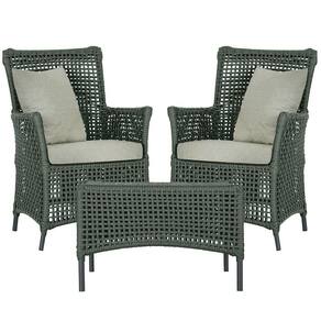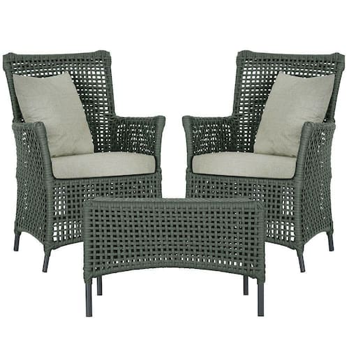2 Poltronas 1 Mesa Igapó Em Alumínio Preta Corda Náutica E3 Verde