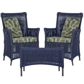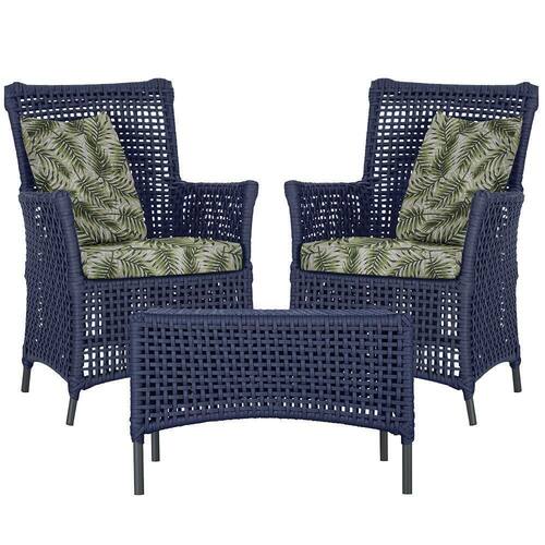 2 Poltronas 1 Mesa Igapó Em Alumínio Preta Corda Náutica E5 Azul