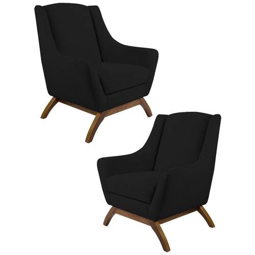 Kit 2 Poltronas Decorativas Base Manu Madeira Juliet B-300 Veludo Preto - Domi