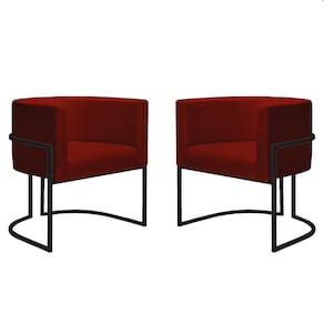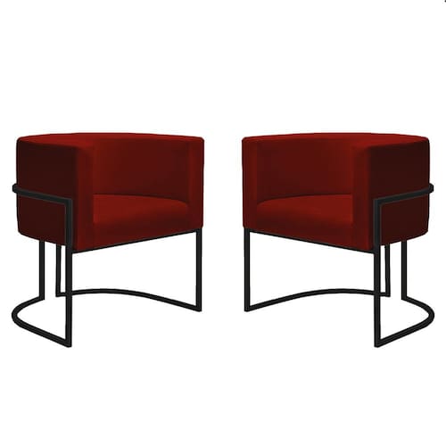 2 Poltronas Decorativa Nayara Base Ferro Preto Suede Marsala