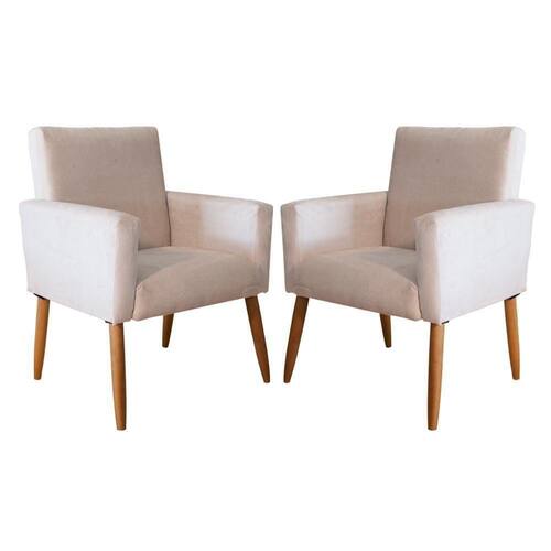 2 Poltronas Decorativas Nina Suede Bege Para Escritório