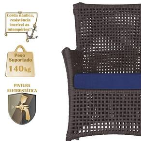 A corda nautica adiciona um toque de rusticidade moderna, enquanto o estofado impermeavel garante que sua poltrona esteja sempre impecavel, mesmo apos uma chuva inesperada ou um acidente com liquidos.