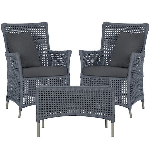 2 Poltronas E 1 Mesa Igapó Alumínio Fendi Corda Náutica E11 Prata