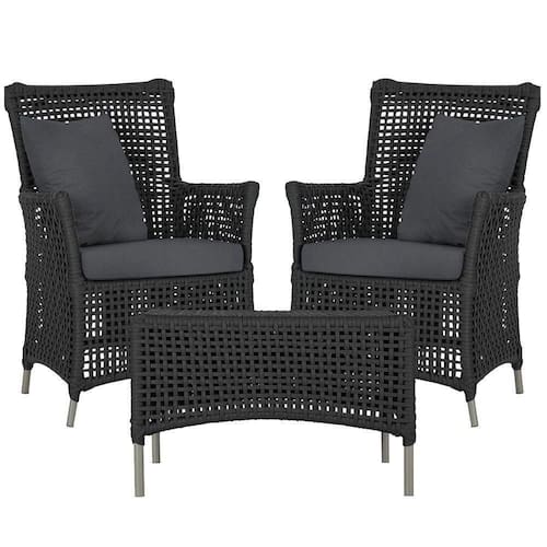 2 Poltronas E 1 Mesa Igapó Alumínio Fendi Corda Náutica E11 Preto