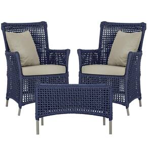 2 Poltronas E 1 Mesa Igapó Alumínio Fendi Corda Náutica E7 Azul