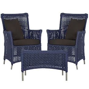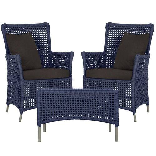 2 Poltronas E 1 Mesa Igapó Alumínio Fendi Corda Náutica E9 Azul