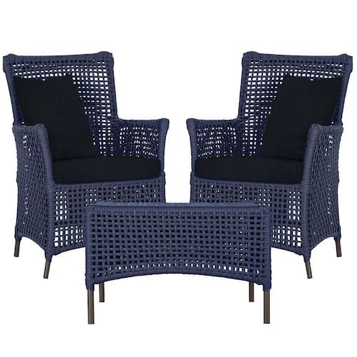 Itens Inclusos: 02 Poltronas e 01 Mesa Igapo em Aluminio Pintura Marrom Corda Nautica Estofado 12