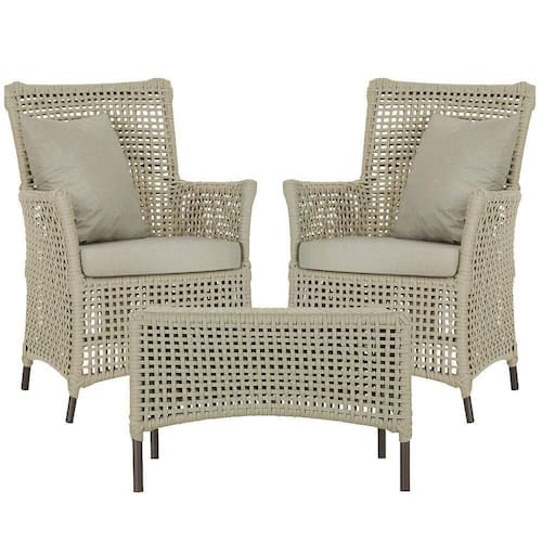 A corda nautica adiciona um toque de rusticidade moderna, enquanto o estofado impermeavel garante que sua poltrona esteja sempre impecavel, mesmo apos uma chuva inesperada ou um acidente com liquidos.