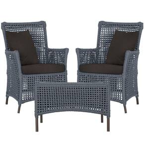 2 Poltronas E 1 Mesa Igapó Alumínio Marrom Corda Náutica E9 Prata