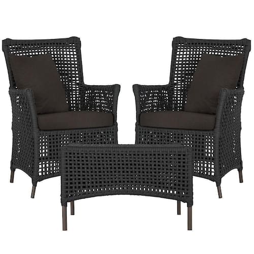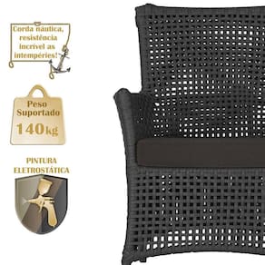 2 Poltronas E 1 Mesa Igapó Alumínio Marrom Corda Náutica E9 Preto