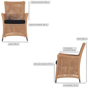 A corda nautica adiciona um toque de rusticidade moderna, enquanto o estofado impermeavel garante que sua poltrona esteja sempre impecavel, mesmo apos uma chuva inesperada ou um acidente com liquidos.